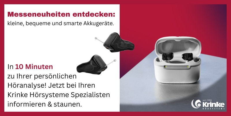 In Insio Charge&Go CIC IX finden zwei Dinge zueinander, die lange unmöglich schienen: Winzig kleine Bauform, präzise maßgefertigt, und die Freiheit eines integrierten wiederaufladbaren Akkus, der bis zu 35 Stunden durchhält. Filigraner Batterietausch? Vergangenheit! Und weil die Miniatur-Geräte auf den Gehörgang angepasst sind, sitzen sie fest und trotzdem bequem – auch bei Aktivität. „Für meine Pilatesgruppe ist das ein Traum – ich höre wieder alles, ohne ständig ‚Wie bitte?‘ zu sagen“, so Annette.